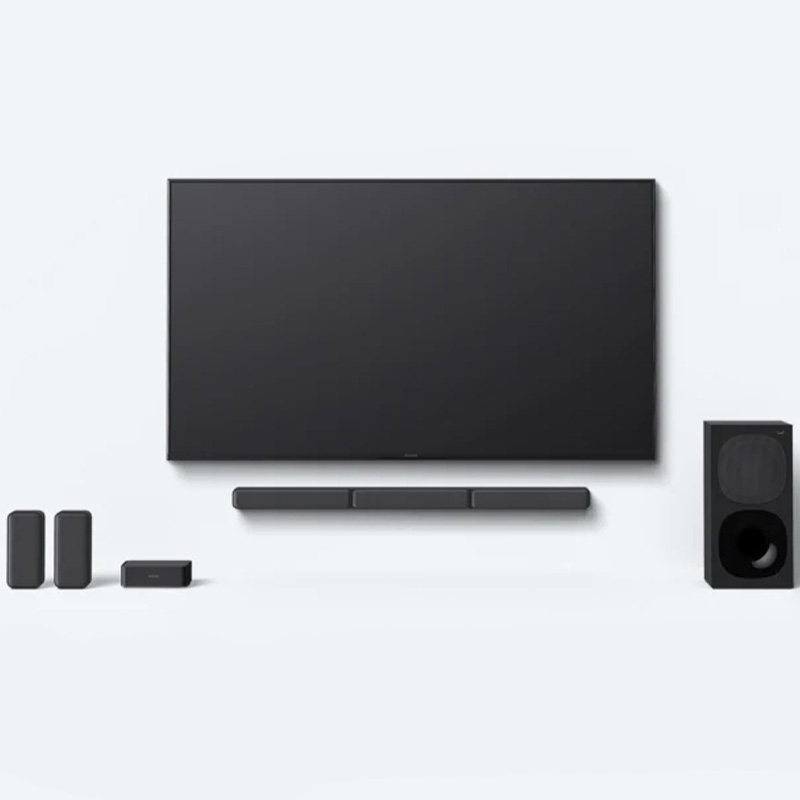یک ساب ووفر بی سیم ایستاده و دو بلندگوی کوچک و دستگاه کنترل کننده یا آمپلی فایر نیز از دارایی‌های این مدل محسوب می‌شود‌‌؛ در نهایت می توان بیان کرد که ساندبار 600 وات ساندبار 600 وات سونی مدل HT-S40R صدای 5.1 کاناله دارد. بلندگوهای 5.1 کاناله‌ی این مدل صدایی فراگیر 600 وات را ارائه می‌دهند. به صورتی که با انتشار صدایی پرتوان در محیط فضایی سینما مانند را برای شما ایجاد می‌نماید و با کسب تجربه‌ی شیرین از شنیدن محتواها هر لحظه حس زنده‌تر شدن فیلم برایتان بیشتر می‌شود. سونی این برند توانا برای رسیدن به صدایی پرتوان و شفاف از فناوری های نوینی بهره گرفته است‌‌، Dolby Digital از این تکنولوژی‌ها به حساب می آید، که شما را در صداهای رسا و دل نشین غرق می سازد‌‌.